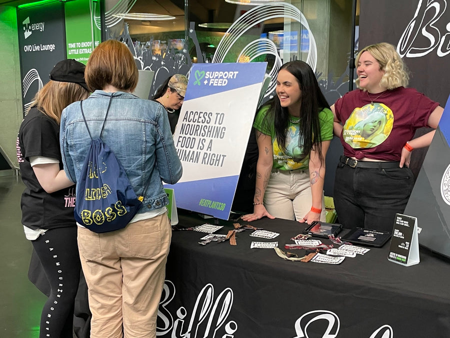 Check out the plant maps on Support & Feed’s Instagram stories the day of your show for info on where to find climate friendly food in the venue!
