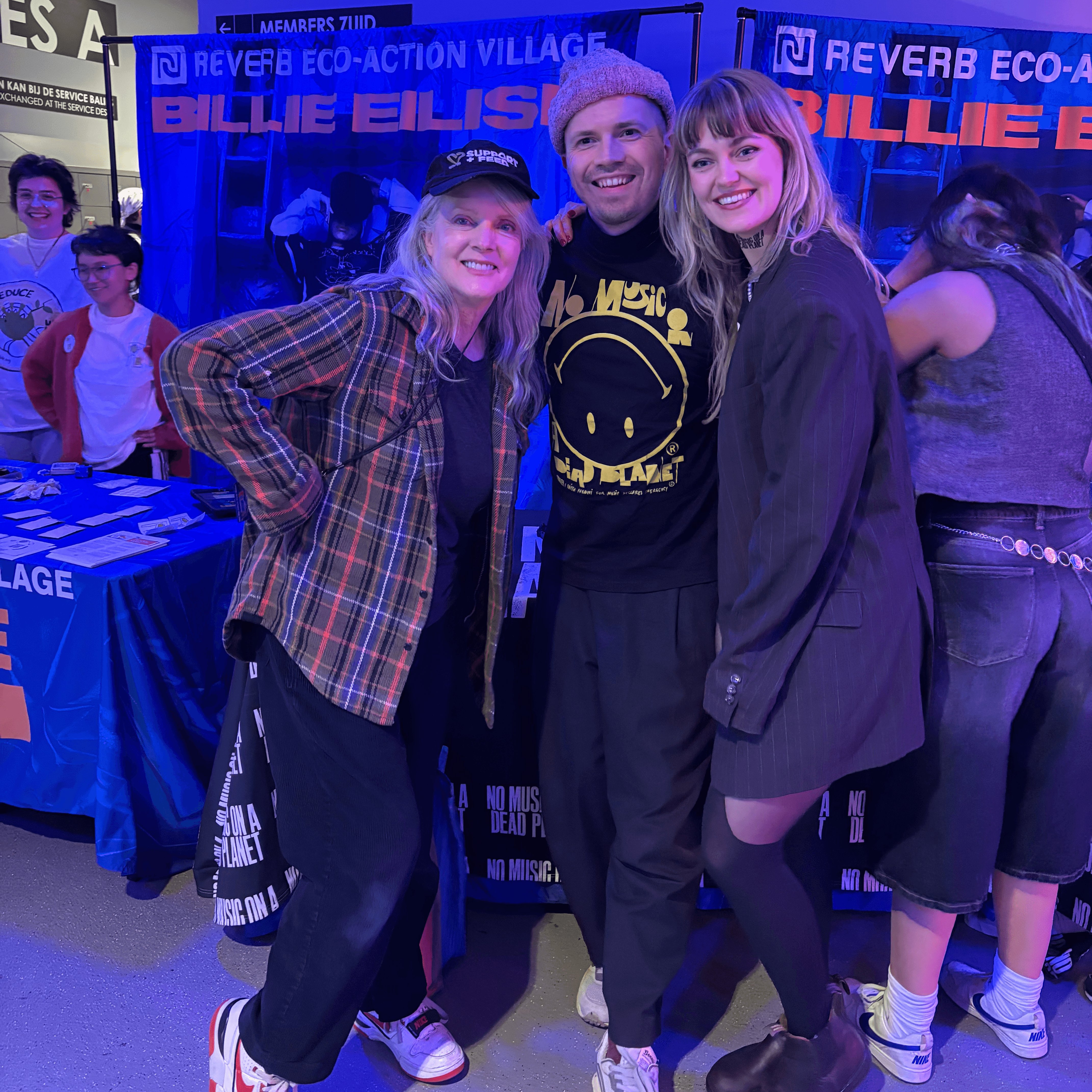 Every stop on Billie’s HIT ME HARD AND SOFT: THE TOUR featured an Eco-Action Village where fans met and took action with organizations working on climate action, food justice, and civic engagement. Each Eco-Action Village was brought to life with support from REVERB, Support+Feed, local nonprofit partners, and Billie’s dedicated fans.